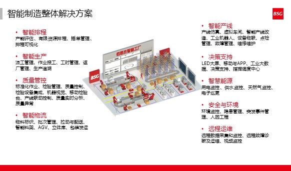 BSG-MES制造执行系统帮助客户实现从生产计划到产品交付全业务流程的信息化管理,实现敏捷制造、透明制造、溯源制造。